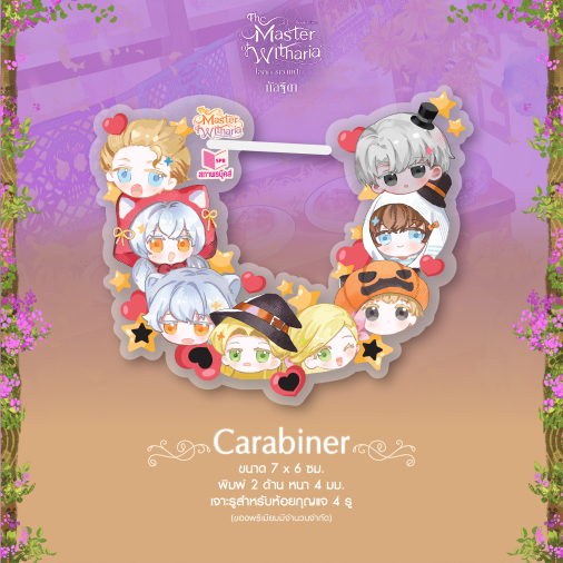 Carabiner The Master of Witharia คาราบิเนอร์ WItharia ขนาด 7 x 6 cm. พิมพ์ 2 ด้าน หนา 4 mm. เจาะรูห้อยพ่วงกุญแจ 4 รู